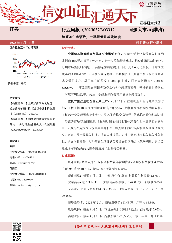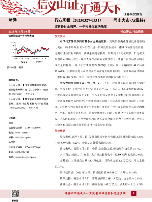 【山西证券】【20230410】证券行业周报:结算备付金调降,一季报催化板块热度-10页