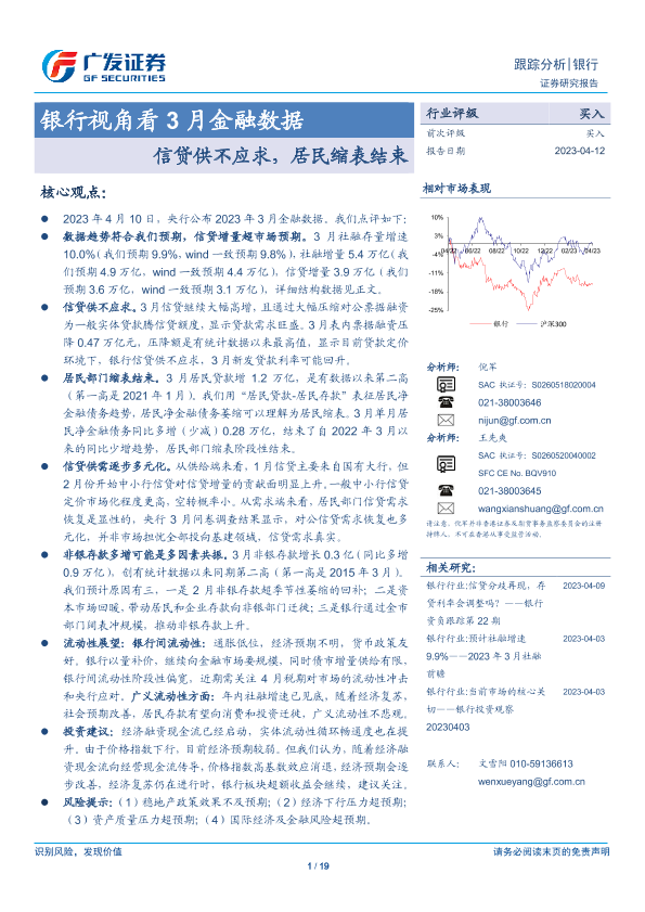 【广发证券】【20230412】银行视角看3月金融数据:信贷供不应求,居民缩表结束-19页