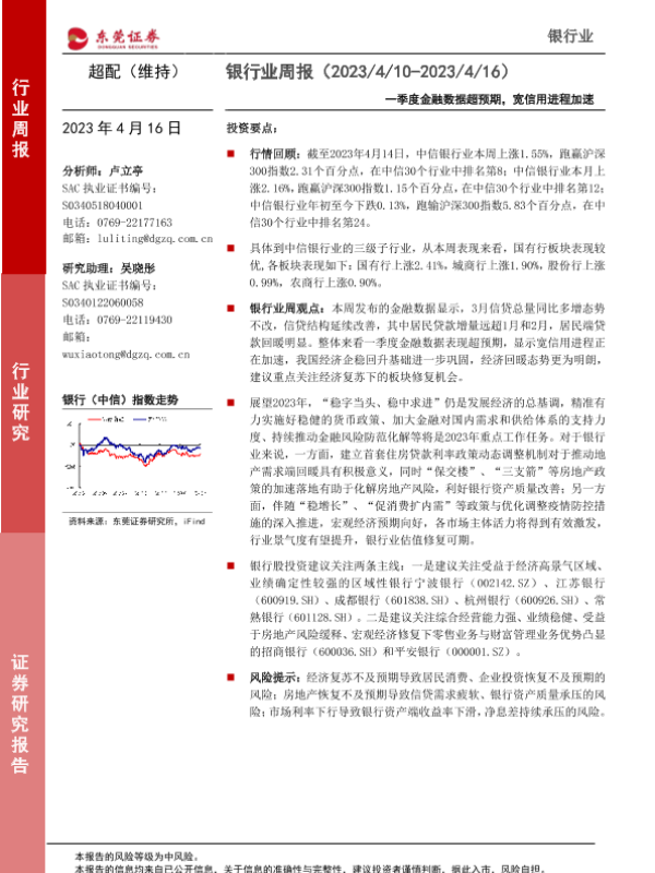 【东莞证券】【20230416】银行业周报:一季度金融数据超预期,宽信用进程加速-11页