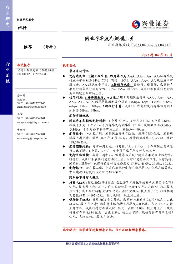 【兴业证券】【20230415】同业存单发行规模上升-14页