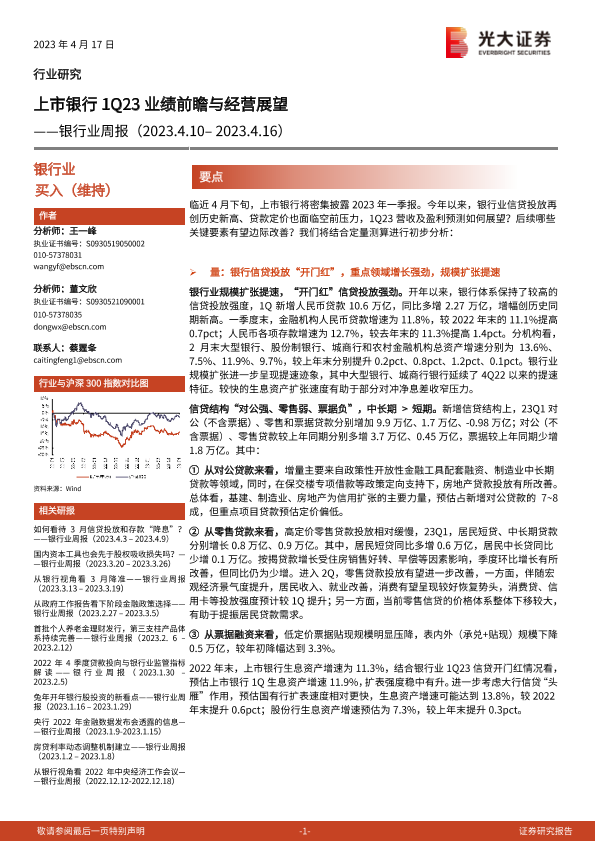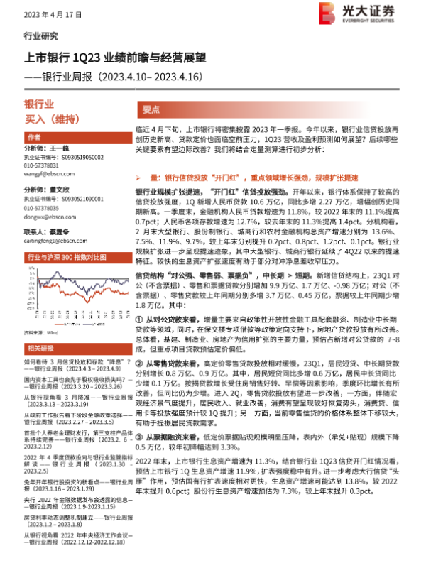【光大证券】【20230417】上市银行1Q23业绩前瞻与经营展望-14页