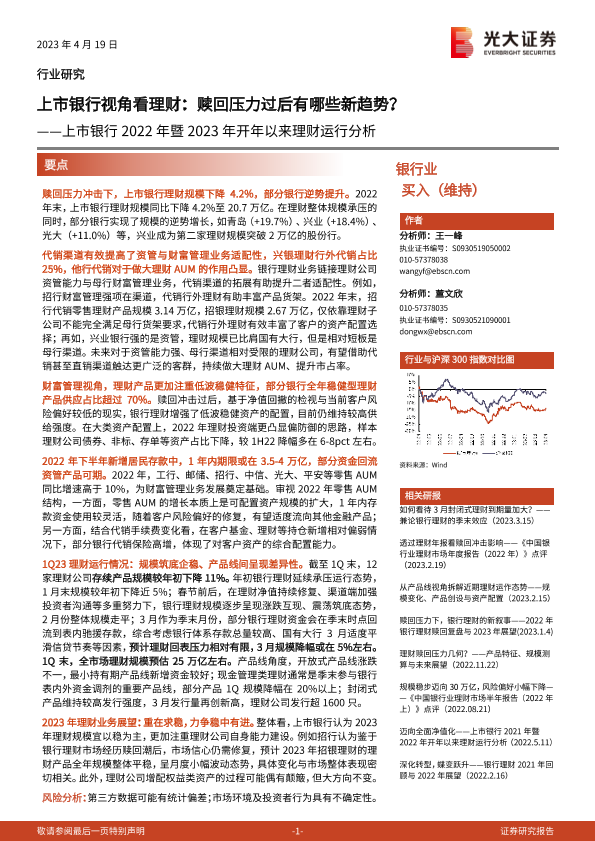 【光大证券】【20230419】上市银行视角看理财:赎回压力过后有哪些新趋势?-13页