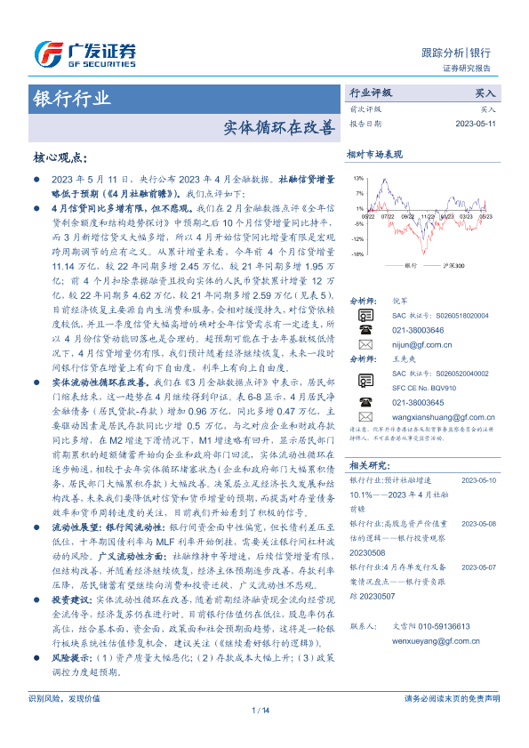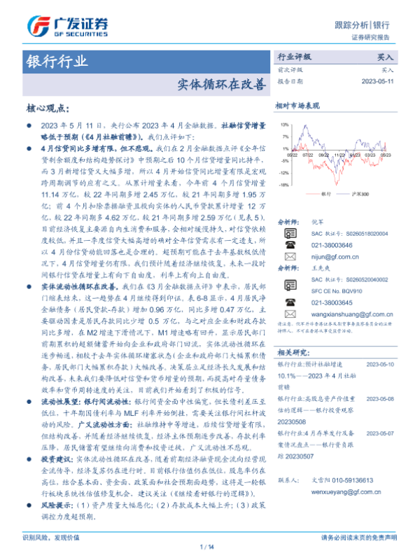 【广发证券】【20230511】银行行业:实体循环在改善-14页