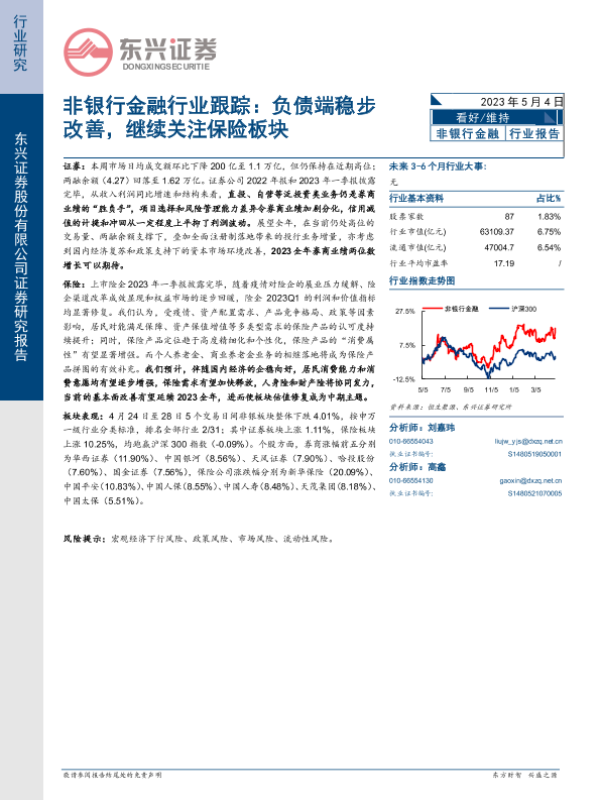 【东兴证券】【20230504】非银行金融行业跟踪:负债端稳步改善,继续关注保险板块-12页