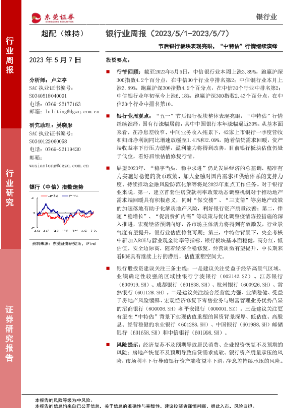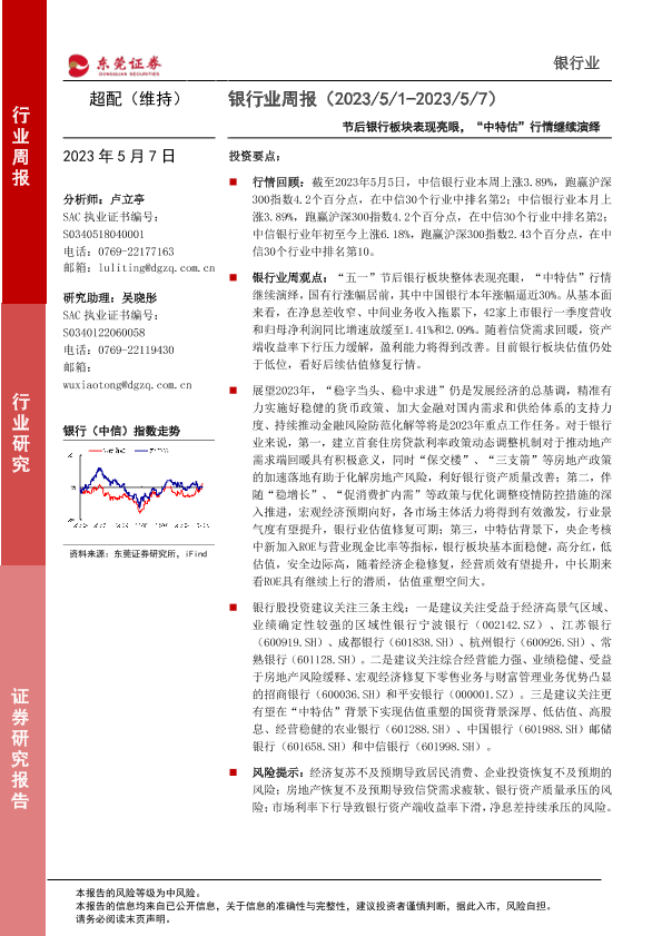 【东莞证券】【20230507】银行业周报:节后银行板块表现亮眼,“中特估”行情继续演绎-11页