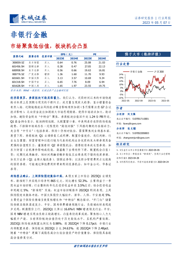 【长城证券】【20230507】非银行金融行业周报:市场聚焦低估值,板块机会凸显-31页