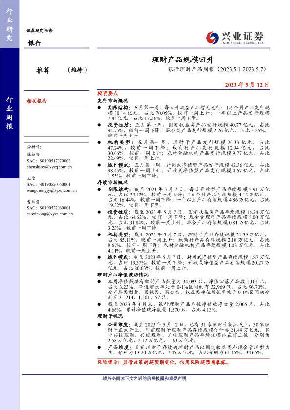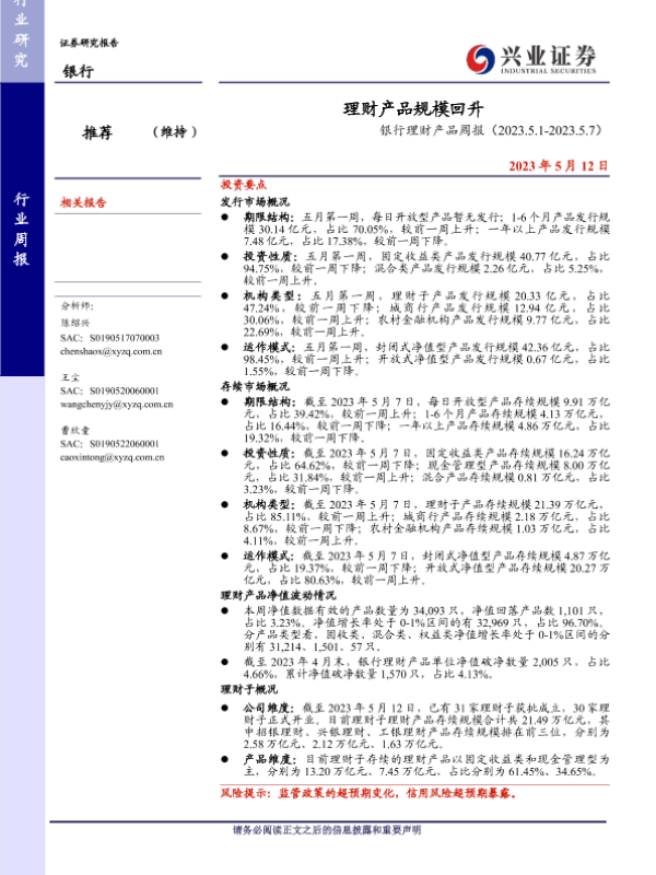 【兴业证券】【20230512】银行理财产品周报:理财产品规模回升-14页