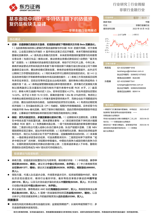 【东方证券】【20230514】非银金融行业周观点:基本面稳中向好,中特估主题下的估值修复仍是板块主旋律-14页