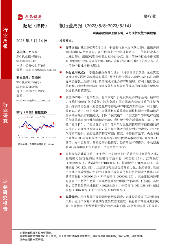 【东莞证券】【20230514】两类存款自律上限下调,4月信贷投放节奏放缓-11页
