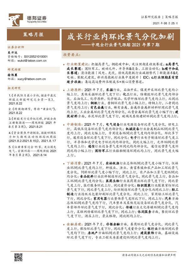 【德邦证券】【20210825】中观全行业景气跟踪2021年第7期:成长行业内环比景气分化加剧-52页