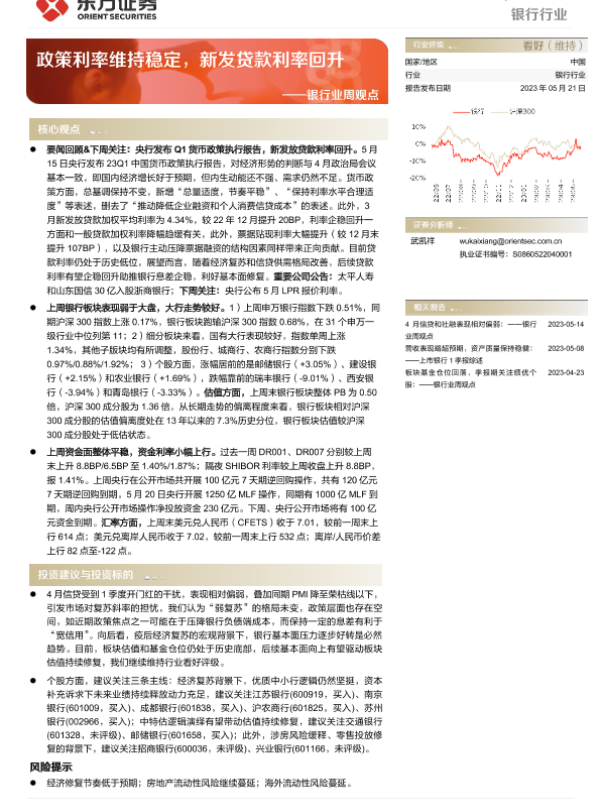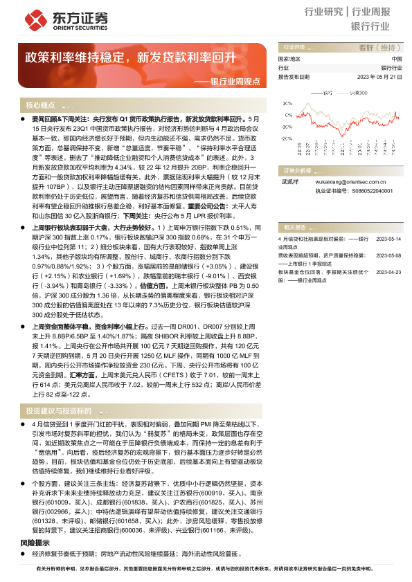 【东方证券】【20230521】银行业周观点:政策利率维持稳定,新发贷款利率回升-12页