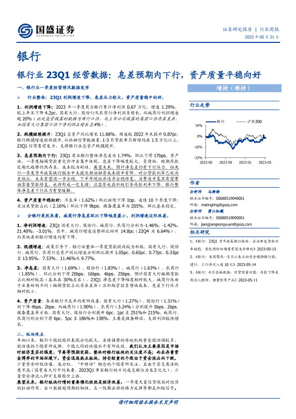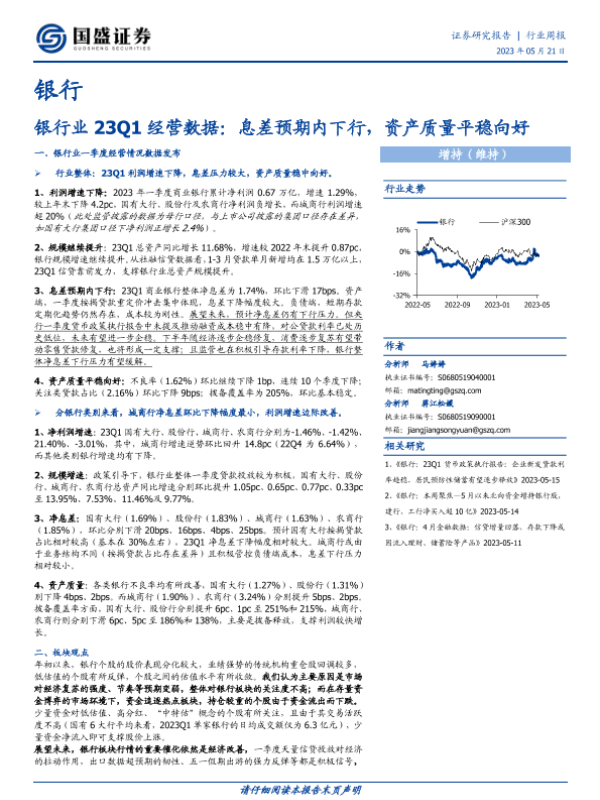 【国盛证券】【20230521】银行业23Q1经营数据:息差预期内下行,资产质量平稳向好-13页