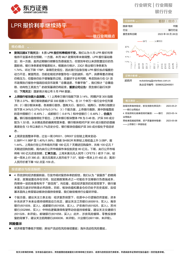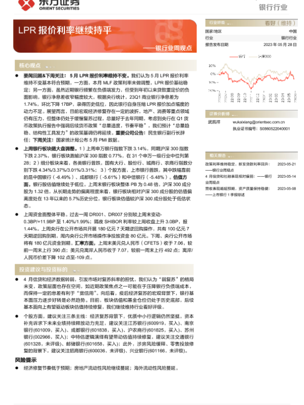 【东方证券】【20230528】银行业周观点:LPR报价利率继续持平-11页