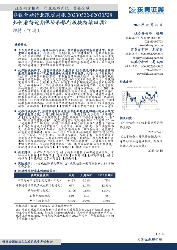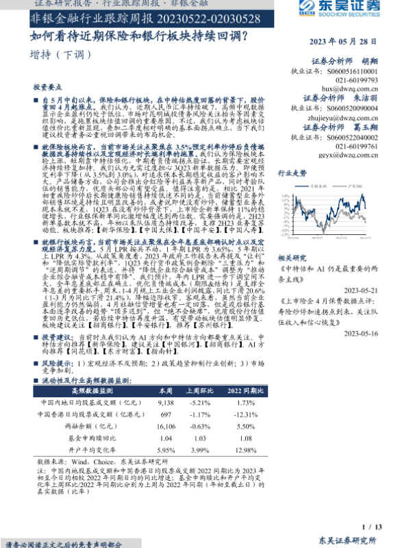 【东吴证券】【20230528】非银金融行业跟踪周报:如何看待近期保险和银行板块持续回调?-13页