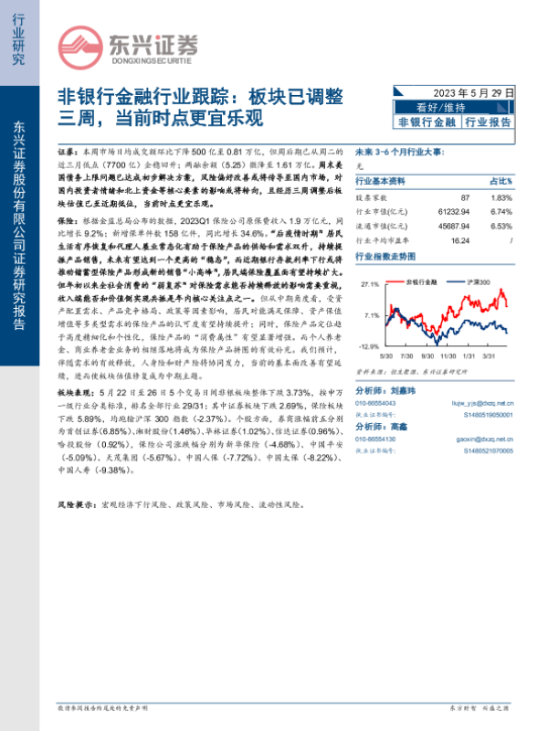 【东兴证券】【20230529】非银行金融行业跟踪:板块已调整三周,当前时点更宜乐观-10页