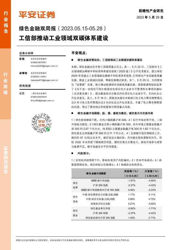 【平安证券】【20230529】绿色金融双周报:工信部推动工业领域双碳体系建设-10页