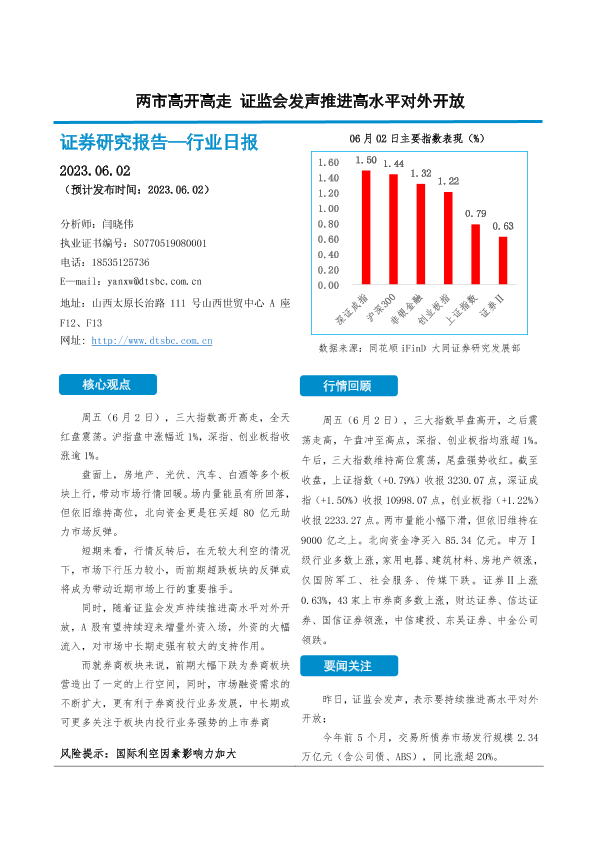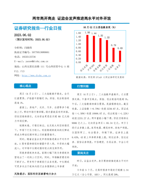 【大同证券】【20230602】两市高开高走 证监会发声推进高水平对外开放-10页