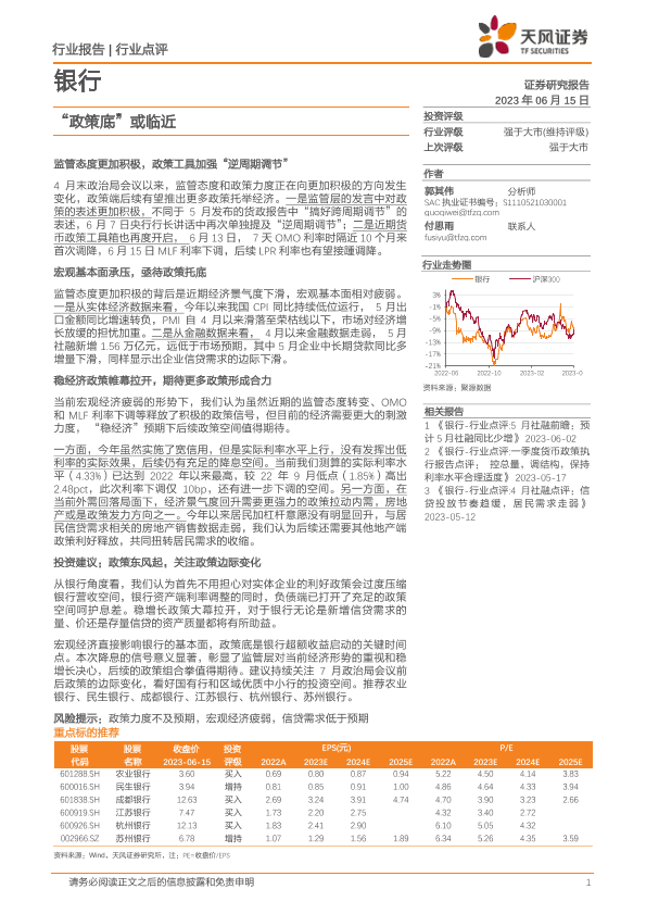 【天风证券】【20230615】银行:“政策底”或临近-10页