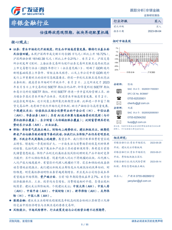 【广发证券】【20230604】非银金融行业跟踪分析:估值释放悲观预期,板块再迎配置机遇-11页
