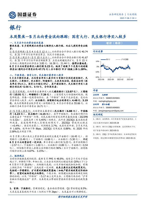 【国盛证券】【20230604】本周聚焦-5月北向资金流向跟踪:国有大行、民生银行净买入较多-12页