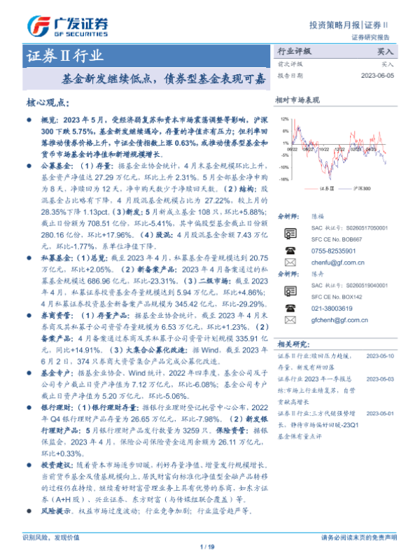 【广发证券】【20230605】证券Ⅱ行业投资策略月报:基金新发继续低点,债券型基金表现可嘉-19页