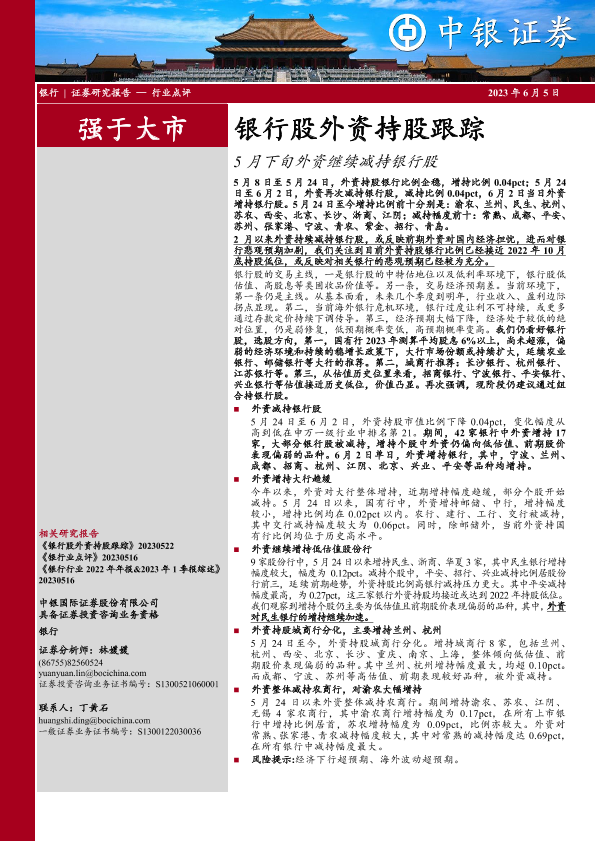 【中银证券】【20230605】银行股外资持股跟踪:5月下旬外资继续减持银行股-18页