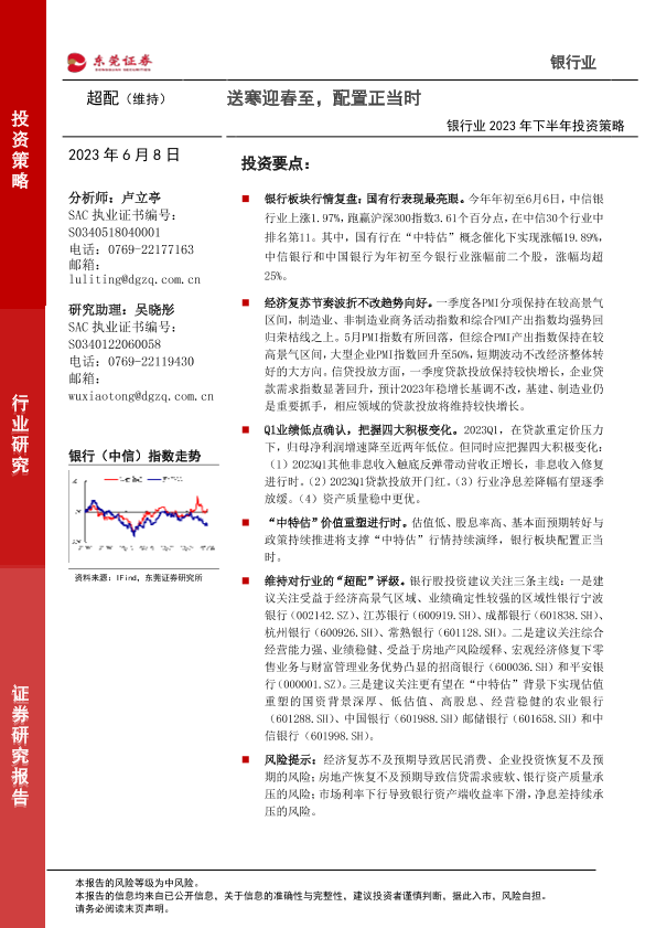 【东莞证券】【20230608】银行业2023年下半年投资策略:送寒迎春至,配置正当时-21页