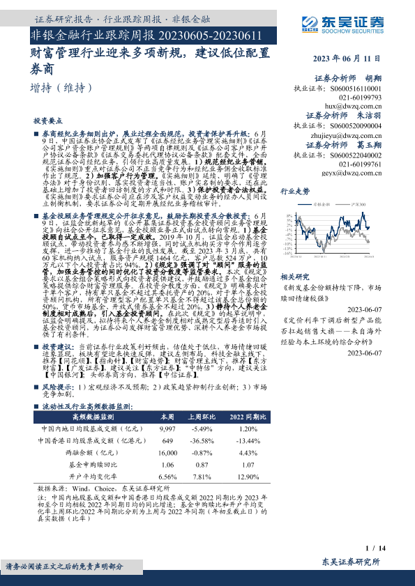 【东吴证券】【20230611】非银金融行业跟踪周报:财富管理行业迎来多项新规,建议低位配置券商-14页