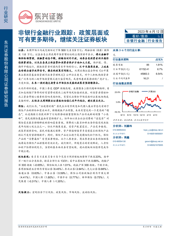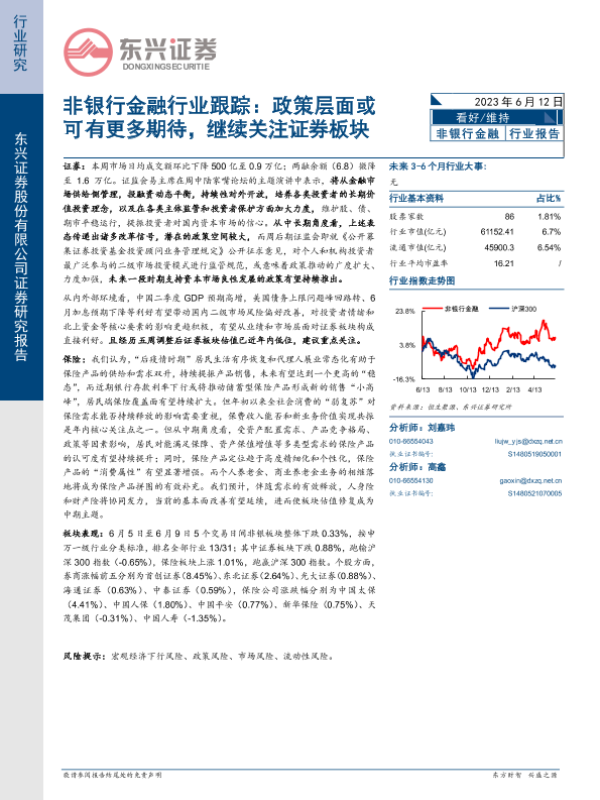 【东兴证券】【20230612】非银行金融行业跟踪:政策层面或可有更多期待,继续关注证券板块-11页