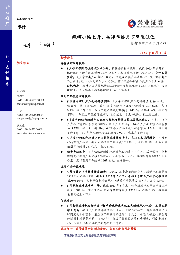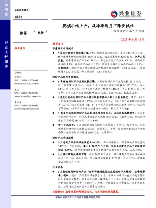 【兴业证券】【20230611】银行理财产品5月月报:规模小幅上升,破净率逐月下降至低位-14页