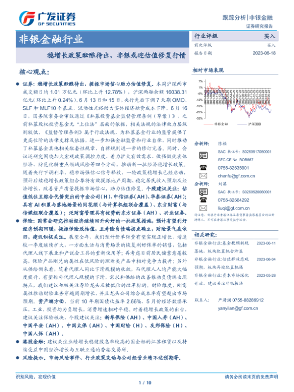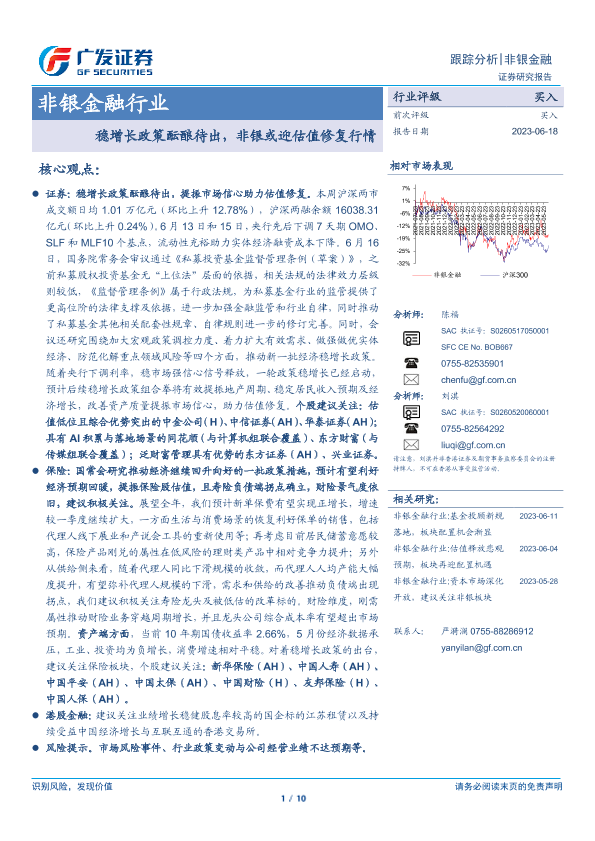 【广发证券】【20230618】非银金融行业跟踪分析:稳增长政策酝酿待出,非银或迎估值修复行情-10页