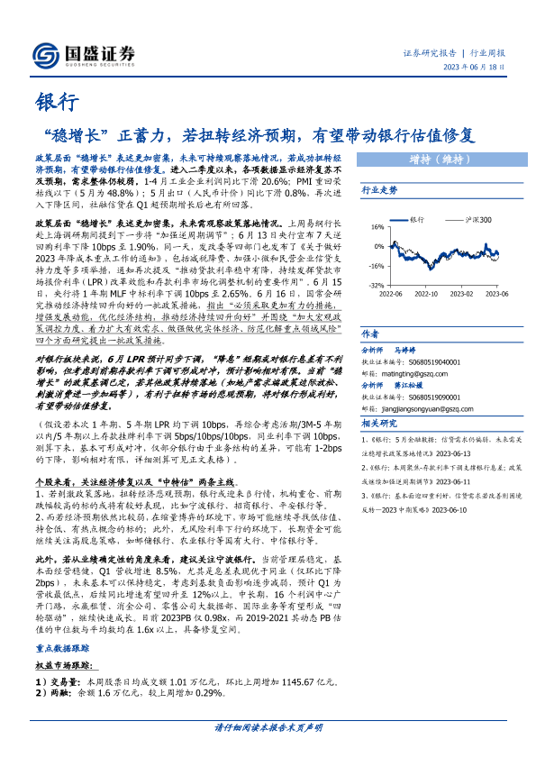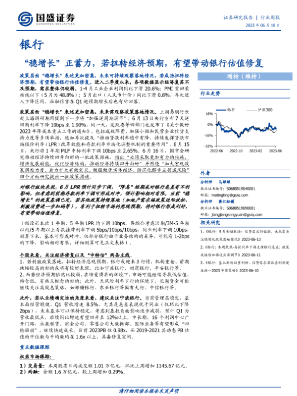 【国盛证券】【20230618】银行行业周报:“稳增长”正蓄力,若扭转经济预期,有望带动银行估值修复-13页