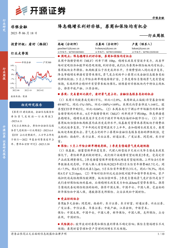 【开源证券】【20230618】非银金融行业周报:降息稳增长利好非银,券商和保险均有机会-10页