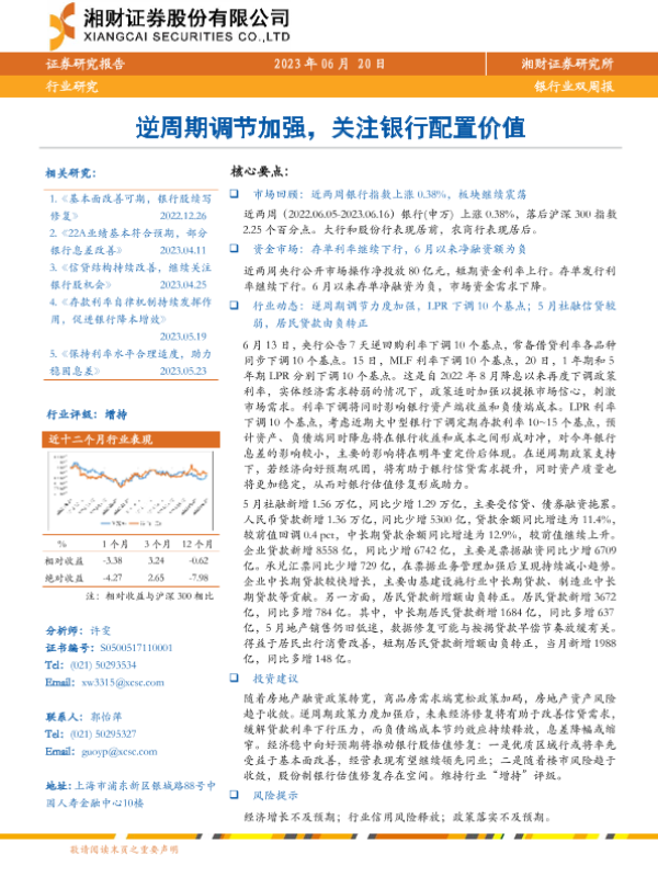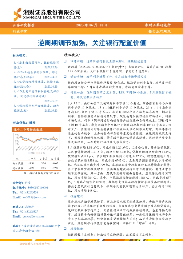 【湘财证券】【20230620】银行业双周报:逆周期调节加强,关注银行配置价值-10页