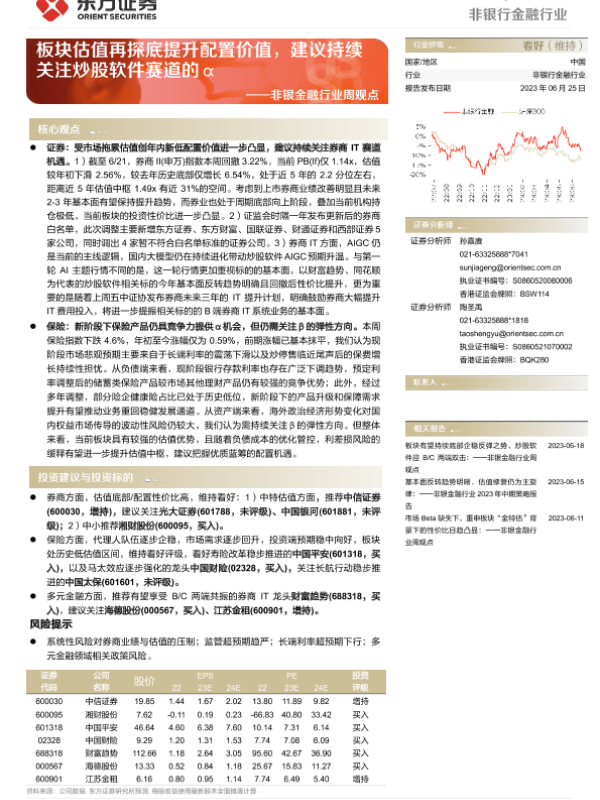【东方证券】【20230625】非银金融行业周观点:板块估值再探底提升配置价值,建议持续关注炒股软件赛道的α-14页