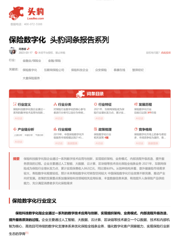 【头豹研究院】【20230626】中国保险数字化行业词条报告-17页