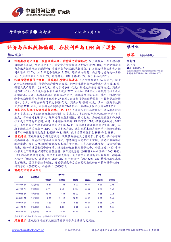 【银河证券】【20230701】经济与社融数据偏弱,存款利率与LPR向下调整-16页