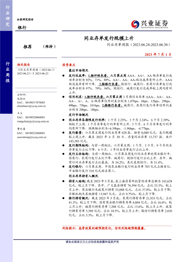 【兴业证券】【20230701】同业存单发行规模上升-14页