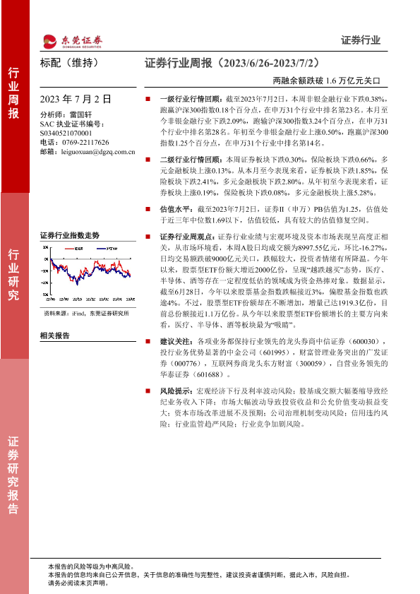 【东莞证券】【20230702】证券行业周报:两融余额跌破1.6万亿元关口-11页