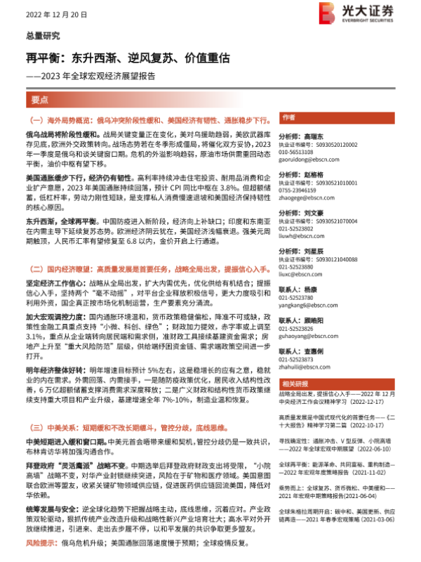 【光大证券】【20221220】2023年全球宏观经济展望:再平衡,东升西渐、逆风复苏、价值重估-126页