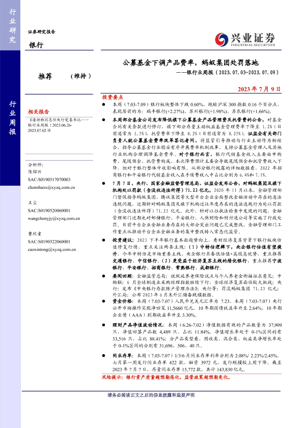 【兴业证券】【20230709】公募基金下调产品费率,蚂蚁集团处罚落地-17页