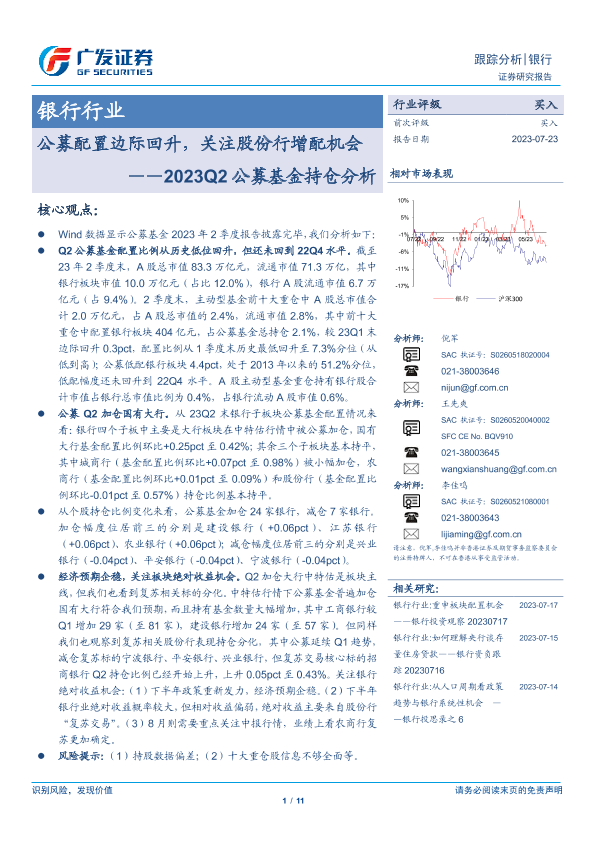 【广发证券】【20230723】2023Q2公募基金持仓分析:公募配置边际回升,关注股份行增配机会-11页