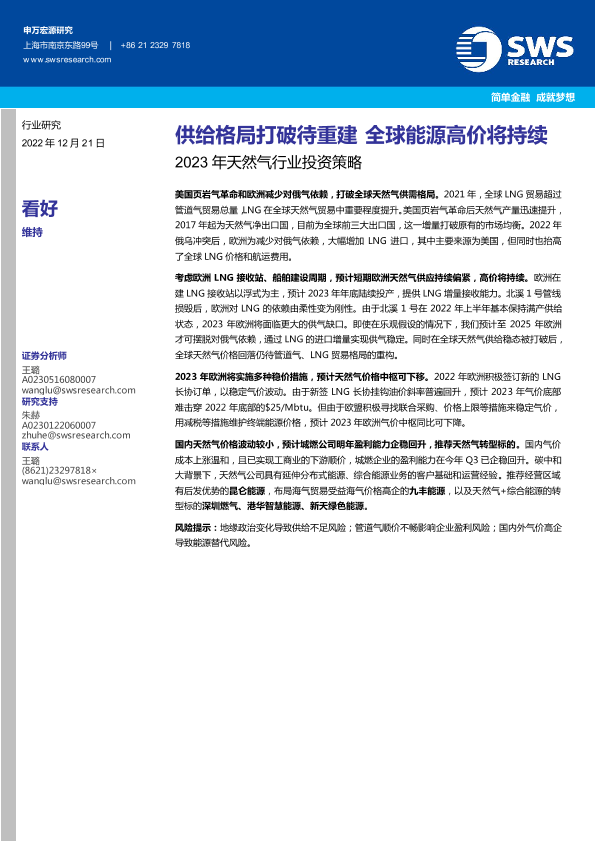 【申万宏源】【20221221】2023年天然气行业投资策略:供给格局打破待重建,全球能源高价将持续-31页