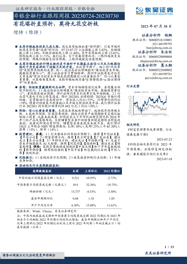 【东吴证券】【20230730】非银金融行业跟踪周报:有花堪折直须折,莫待无花空折枝-13页