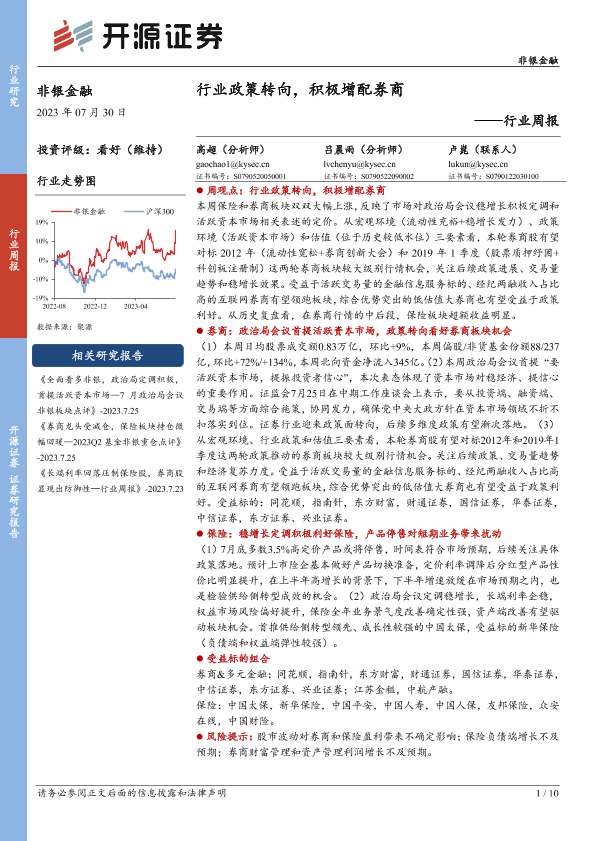 【开源证券】【20230730】非银金融行业周报:行业政策转向,积极增配券商-10页