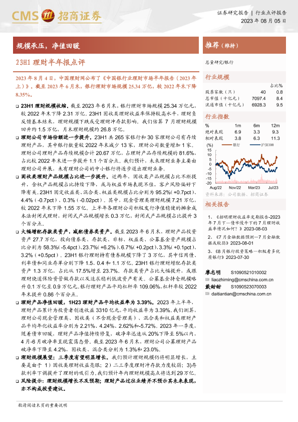 【海通证券】【20230805】银行业23H1理财半年报点评:规模承压,净值回暖-11页