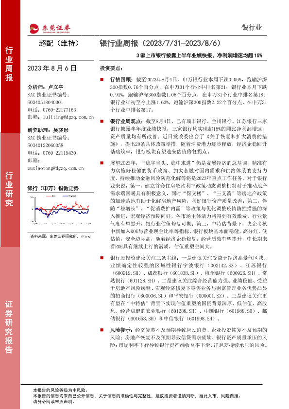【东莞证券】【20230806】3家上市银行披露上半年业绩快报,净利润增速均超15%-11页