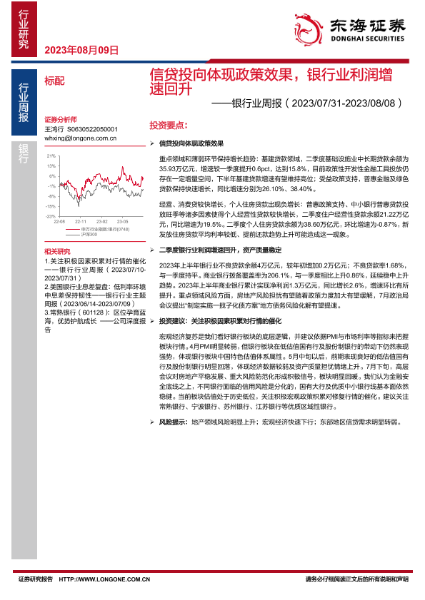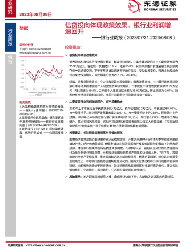 【东海证券】【20230809】信贷投向体现政策效果,银行业利润增速回升-12页