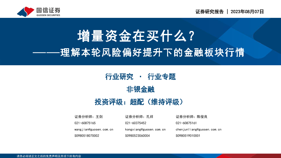 【国信证券】【20230807】理解本轮风险偏好提升下的金融板块行情-增量资金在买什么?-68页