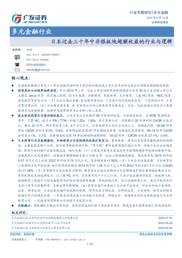【广发证券】【20230814】日本过去三十年中非银板块超额收益的行业与逻辑-27页